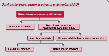 Alergias: interviene el sistema inmunológico frente a un componente del alimento. Algunos de los síntomas más frecuentes son: urticaria, hinchazón de labios y párpados, vómitos, diarrea, asma. Un ejemplo puede ser la alergia al huevo.