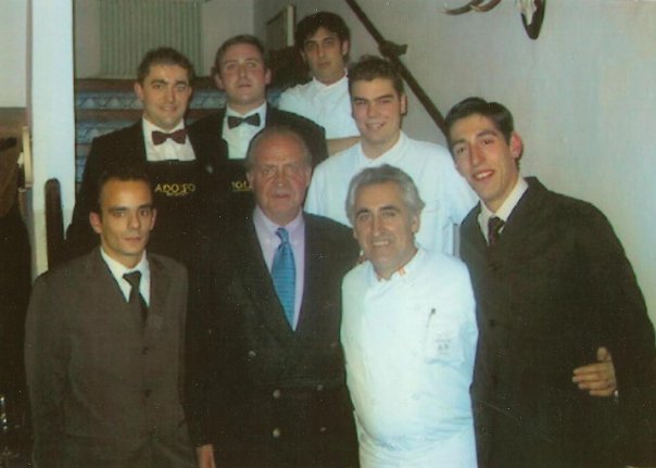 El caso es que yo también tengo mis historia con El rey de España, que me hizo pasar un rato amargo a cambio de una foto con su majestad. El caso fue durante un catering en, la finca Casa de Vacas (Bodega Dominio de Valdepusa) de su primo el Marqués de Griñón, el Chef Adolfo con quien trabajé tuvo a bien llevarme junto a Jose María López, Sumiller del que aprendí mucho y que ese año recibió el Premio Nacional de Gastronomía junto al Gran Custodio, el caso fue que como aficionado a la caza que es, el menudeo del día fue reflejado en el menú, y el anfitrión decidió de maridaje una vertical de sus vinos, tanto que cinco copas de buen tamaño y al final la de agua, que por defecto quedó pequeña en comparación, y con la corpulencia de los Borbones se dificultaba el servicio mucho y decidí enjarrar el agua para servirla con más seguridad (con guante blanco, claro), así y con mucho esfuerzo, alargando el brazo como boomer rellenaba la copa de agua a el Rey de todos los Españoles, y notaba como me daba tirones del mandil, asustado se lo dije el Maestresala que le miraba, me miraba, y como yo mismo no daba crédito, volvía a servir y seguí dando toques al mandil disimuladamente.